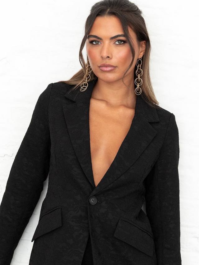 Этот эффектный блейзер дополнен тонким верхним слоем из цветочного кружева, отложным воротником, однобортной застежкой, карманами с клапанами и приталенной талией, что создает привлекательный силуэт.