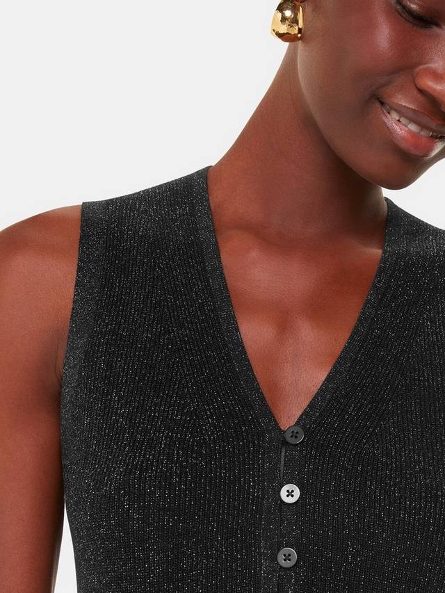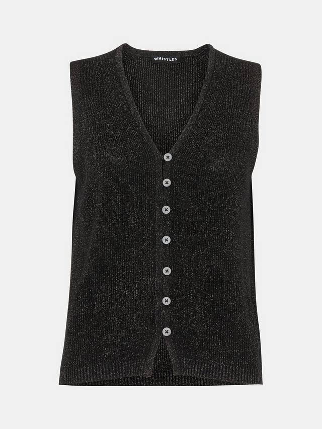 Эта майка от Whistles, связанная из мягкой хлопковой пряжи с застежкой на пуговицы спереди, добавит красивого блеска любому образу.
