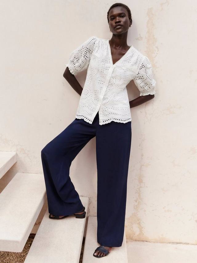 Идеальная хлопковая блузка Karis — воплощение повседневного комфорта с женственными акцентами и свободным кроем. Просто добавьте деним.