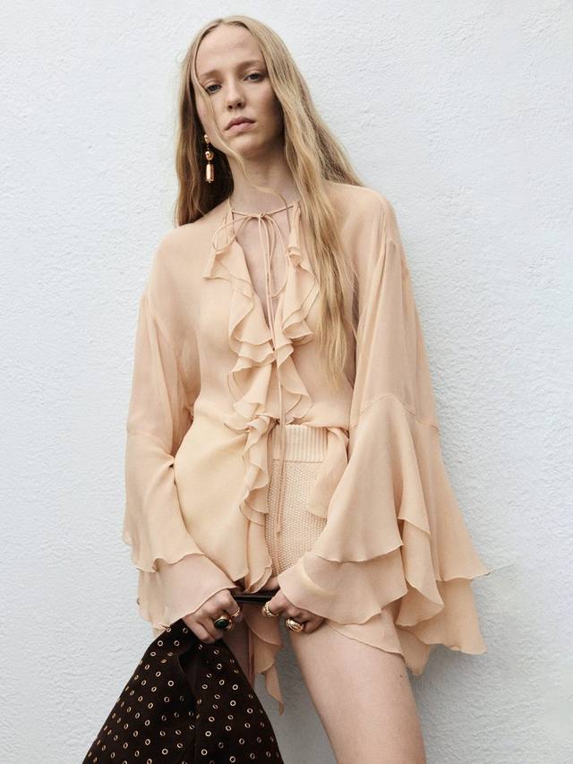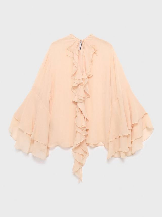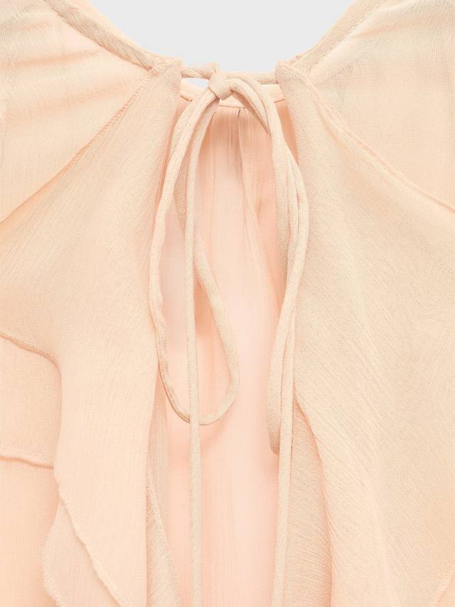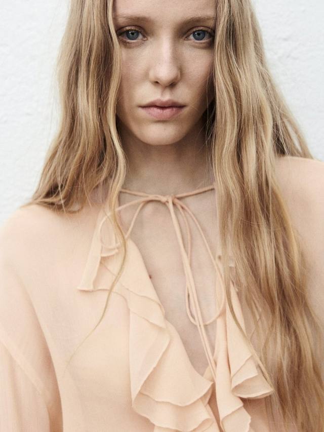 Эта блузка с длинными рукавами и завязкой на шее добавит комфорта и изящества вашему дню. Текстурированная вискозная ткань дарит ощущение лёгкости, а игривый вырез горловины добавляет интереса.