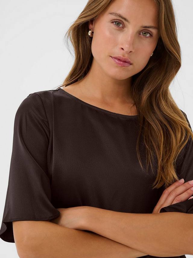 Эта блузка от KAFFE станет изящным дополнением к вашему гардеробу и освежит его так необходимым образом. Вырез лодочкой и короткие рукава делают ее легкой, но прочной и идеально впишутся в ваш повседневный гардероб.