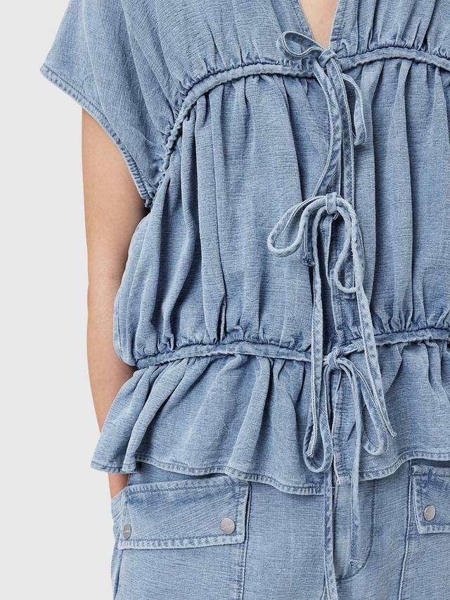 Встречайте лето с блузкой AllSaints, созданной для прохладных дней и оживленных вечеров. Мягкая ткань обеспечивает длительный комфорт, а V-образный вырез и безрукавка идеально подходят для многослойного ношения или самостоятельного образа.