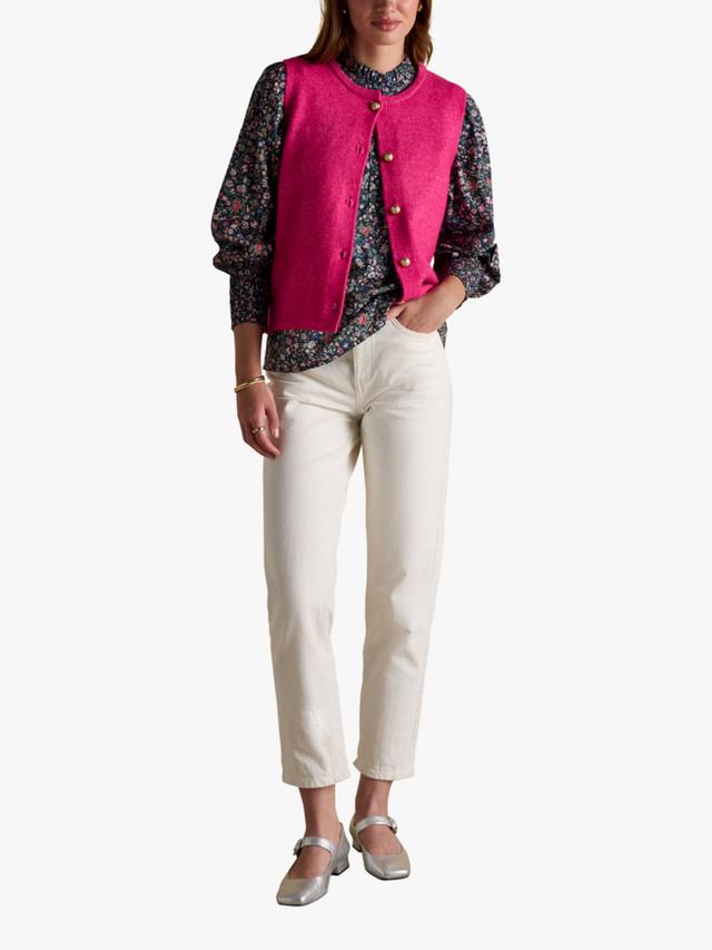 Вырез горловины украшен изысканной оборкой, которая добавляет нотку женственности. Застежка на пуговицы, каскадом спускающиеся по всей длине этого искусного изделия.