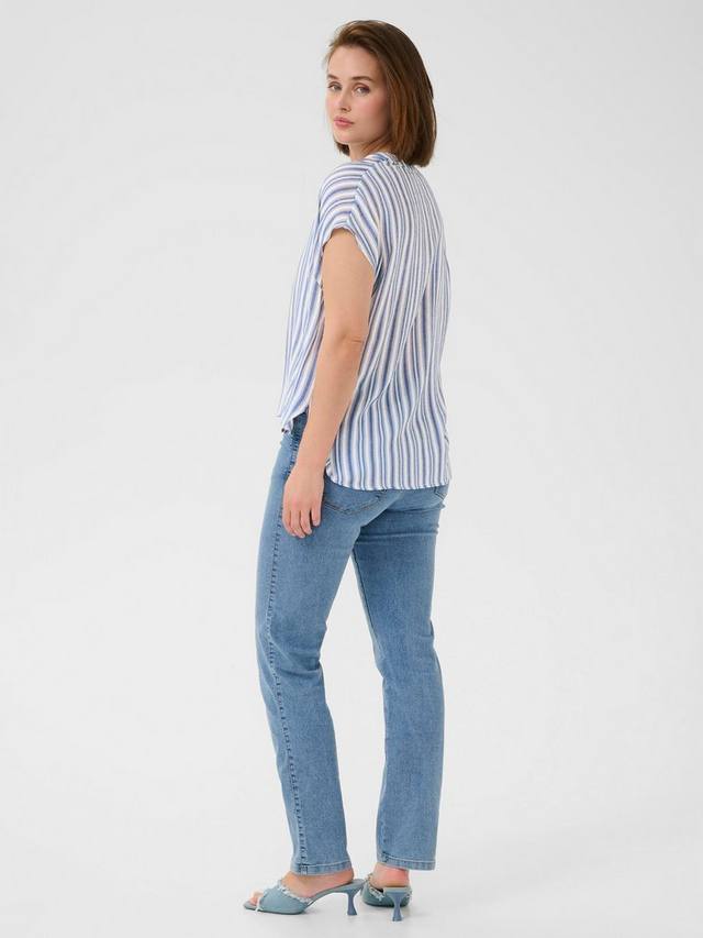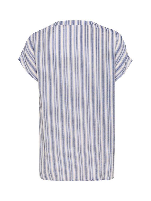 Эта блузка KAFFE сочетает в себе четкие полоски, свободный V-образный вырез и короткие рукава, предлагая вам непринужденный стиль и настоящий комфорт как для напряженных дней, так и для непринужденных выходных.