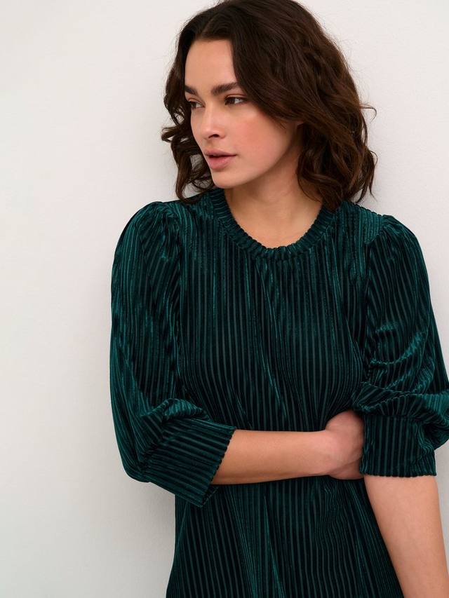 Эта блузка от KAFFE из мягкого вельвета станет незаменимым дополнением к вашему гардеробу. Она имеет круглый вырез, классический крой и рукава-буфы до середины бедра, собранные на широкую манжету.