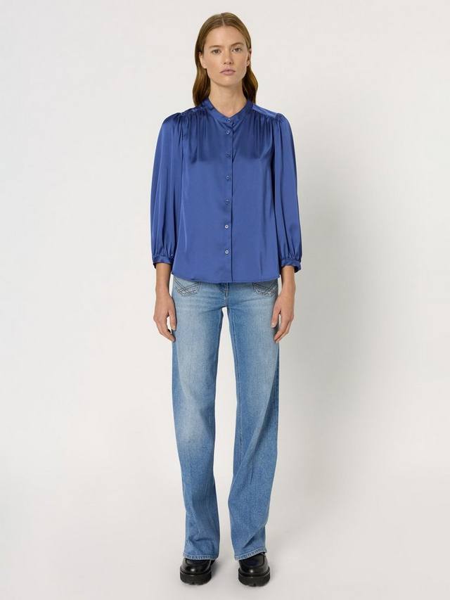 Четкий воротник и свободный крой этой блузки помогут вам чувствовать себя уверенно в течение дня, а продуманные детали подчеркнут вашу индивидуальность.