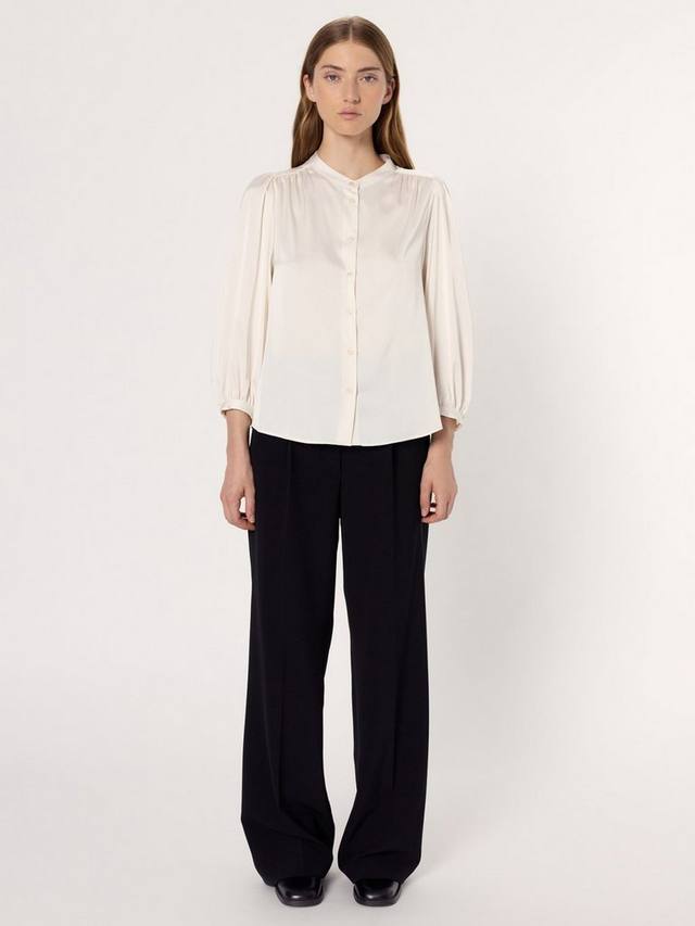 Четкий воротник и свободный крой этой блузки помогут вам чувствовать себя уверенно в течение дня, а продуманные детали подчеркнут вашу индивидуальность.
