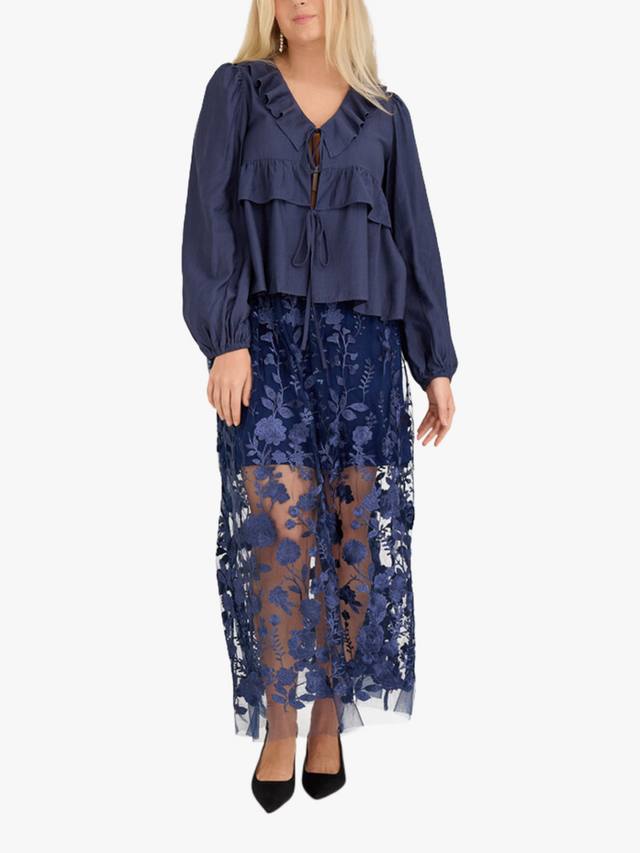 Блузка Charlotte — это блузка на завязках. У блузки длинные рукава и V-образный вырез. Размер стандартный.