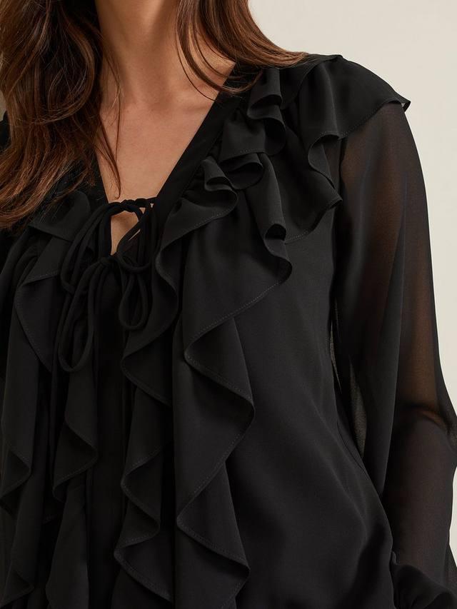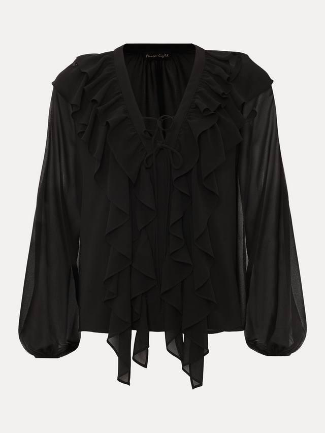 Современная блузка для вашего гардероба на выходные. Женственный V-образный вырез и завязка на талии украшены оборками по краю горловины и по лифу. Просто сочетайте с любыми другими предметами гардероба в этом сезоне.