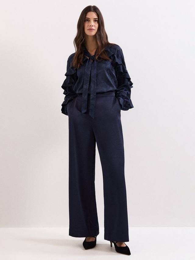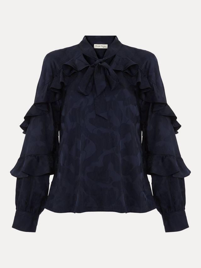Простая блузка от Phase Eight. Завязывающийся воротник и длинные рукава, однотонный дизайн подойдут ко всему. Повседневная простота со стильной изюминкой.