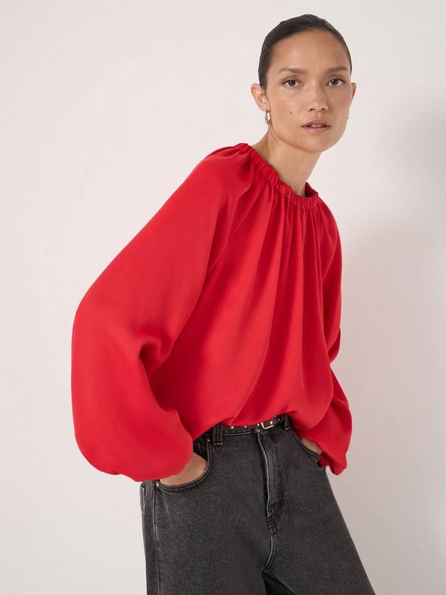 Простая блузка от HUSH. Круглый вырез горловины, короткие рукава-фонарики и однотонный цвет позволяют носить её с чем угодно. Повседневная, удобная и непринуждённо шикарная.