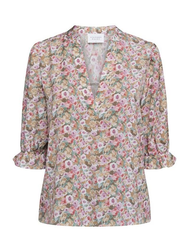 Venny — женственная и элегантная блузка с романтичным цветочным узором. Блузка имеет глубокий V-образный вырез и короткие рукава-буфы с оборками. Изготовлена из лёгкого и воздушного материала.