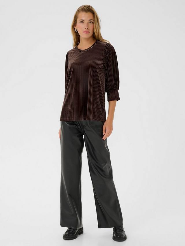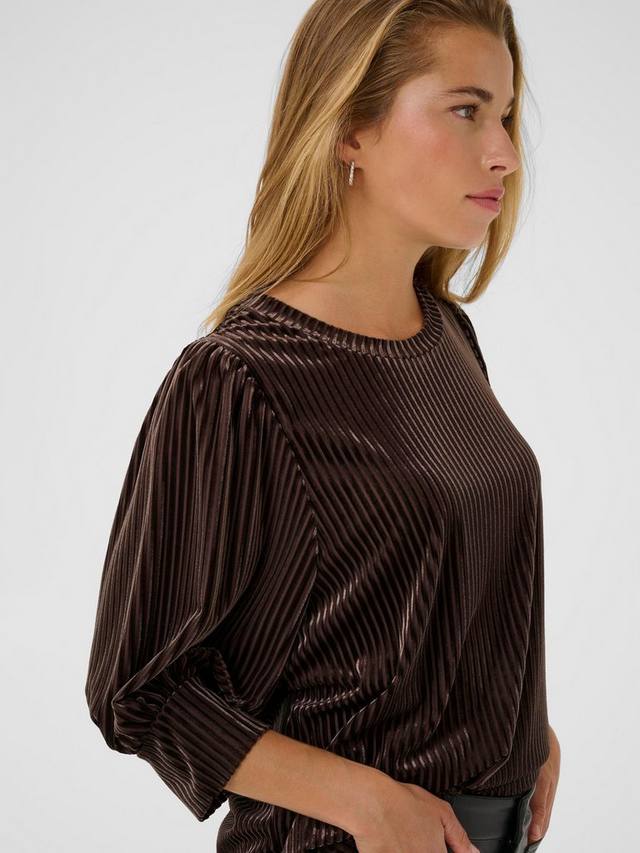 Блузка от KAFFE. Круглый вырез горловины и рукава три четверти, универсальный, простой фасон. Она будет блистать на любой встрече.