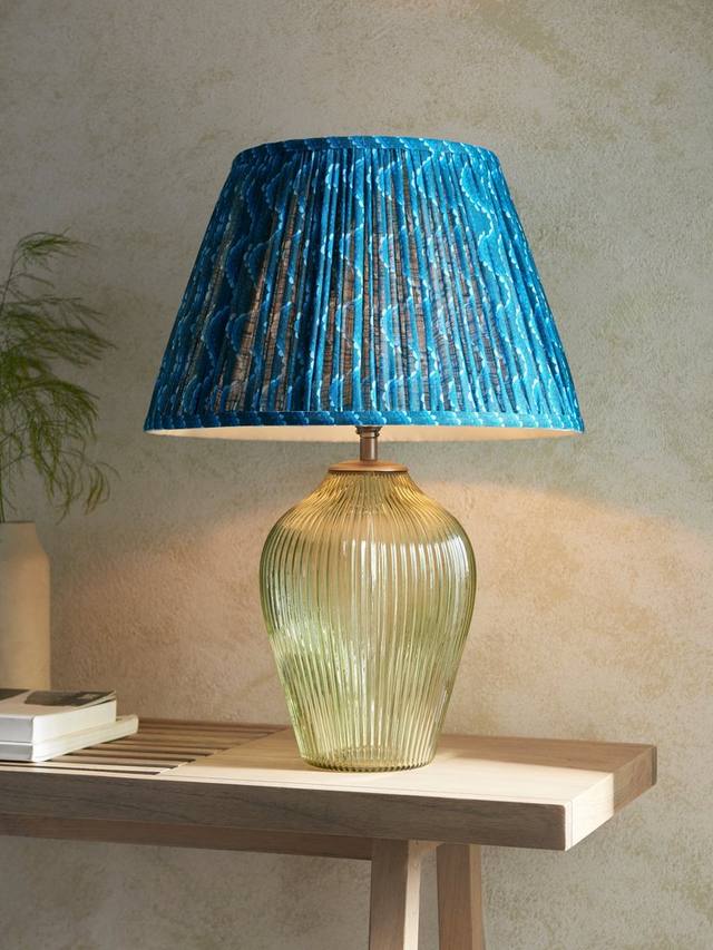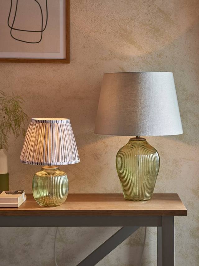Основание лампы из нашей серии светильников Fulbrook отличается красивым ребристым стеклянным дизайном, который смягчает свет и добавляет текстуру помещению.