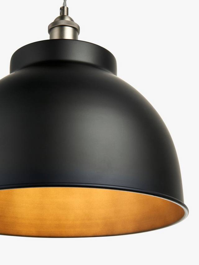 Наш популярный потолочный светильник Baldwin, переделанный в более крупный подвесной светильник, станет ещё более выразительным акцентом в вашем интерьере. Благодаря фирменной куполообразной форме и контрастной внутренней части, он доступен в различных вариантах отделки в индустриальном стиле.