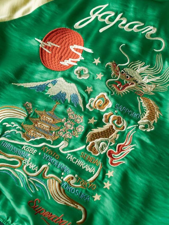 Созданная с учётом традиций и внимания к деталям, куртка-бомбер Sukajan Embroidered Bomber отдаёт дань уважения японским и американским университетским курткам, сохраняя при этом фирменный стиль Superdry. Материал мягкий и приятный на ощупь, как шёлк. Вышитая карта Японии на спине и вышитые изображения спереди демонстрируют смешанную культуру Японии и Америки.