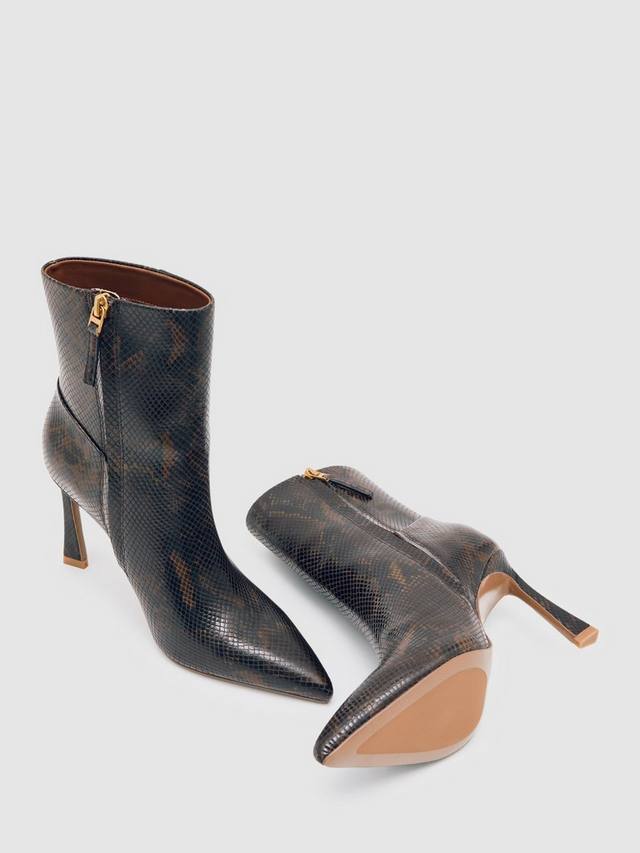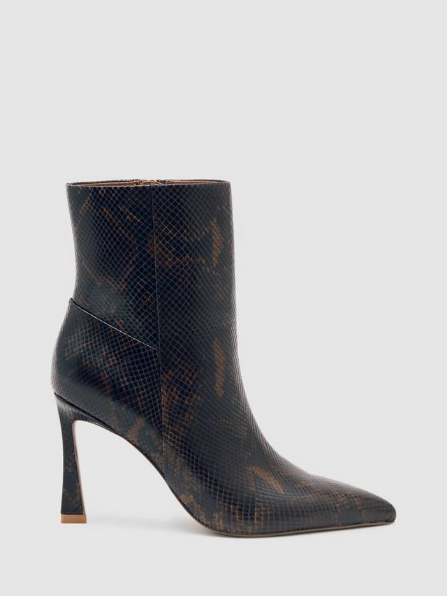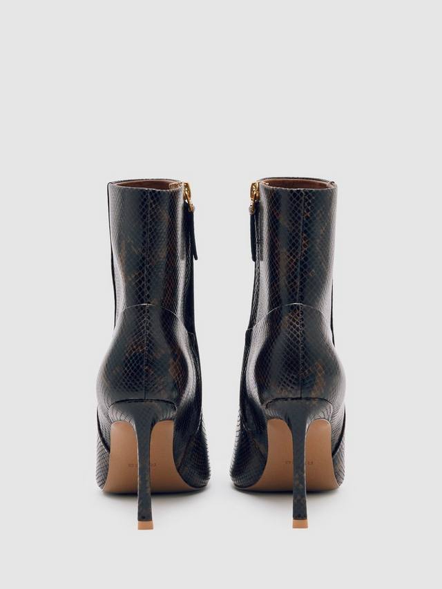 Ботинки на высокой шпильке от Reiss, изготовленные из кожи с эффектом змеиной кожи, с эффектным острым носком и удобной застежкой-молнией для удобства надевания.
