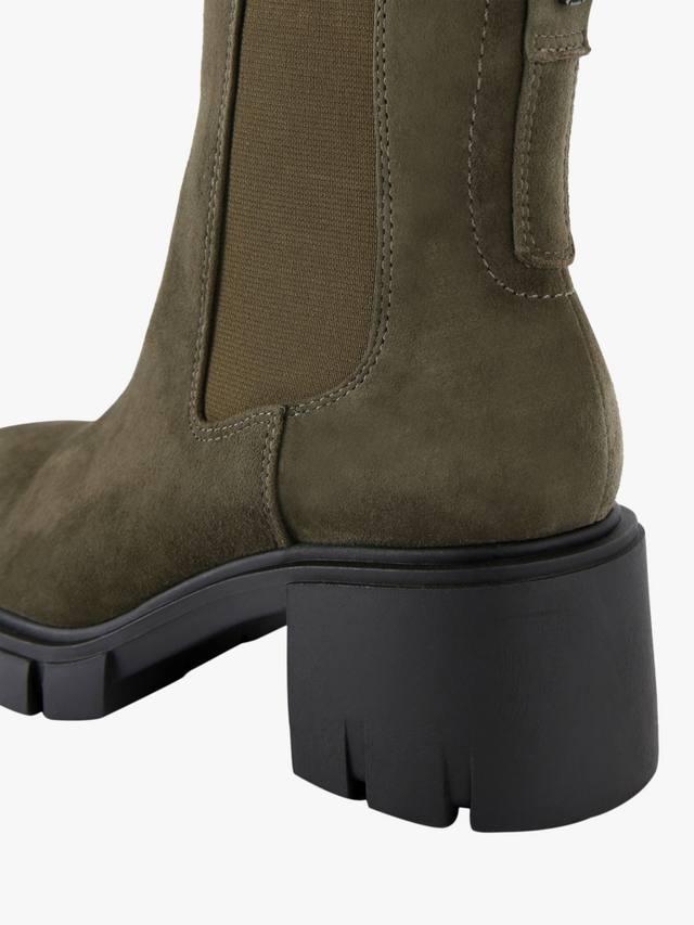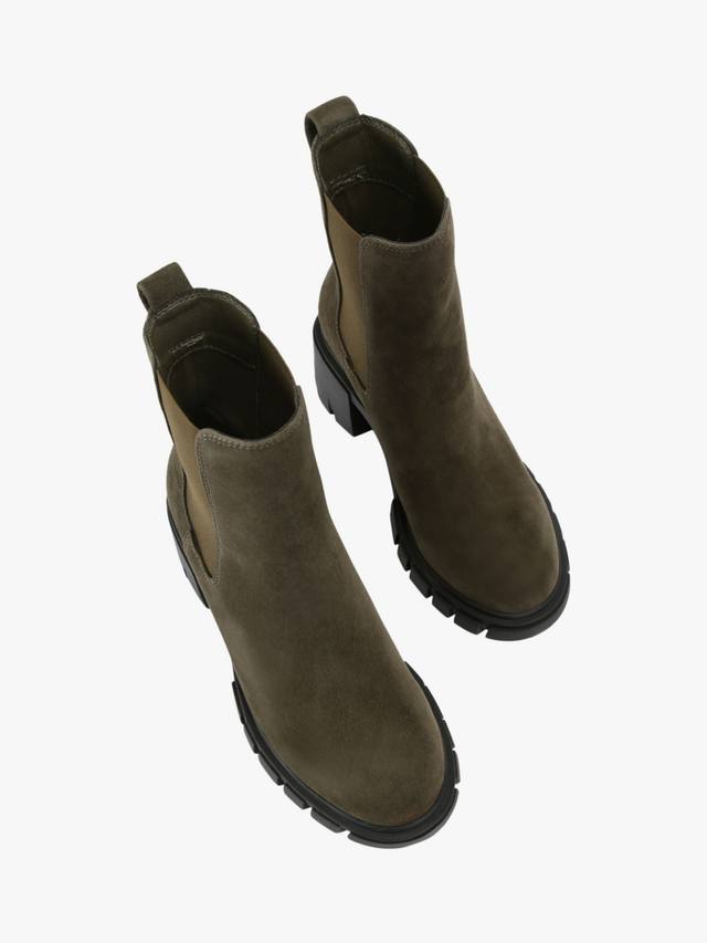 Пара ботильонов Carvela на среднем каблуке с замшевым верхом. Круглый закрытый носок и массивный блочный каблук обеспечивают комфорт и поддержку в течение всего дня, а продуманная застежка-молния спереди позволяет легко надевать и снимать.