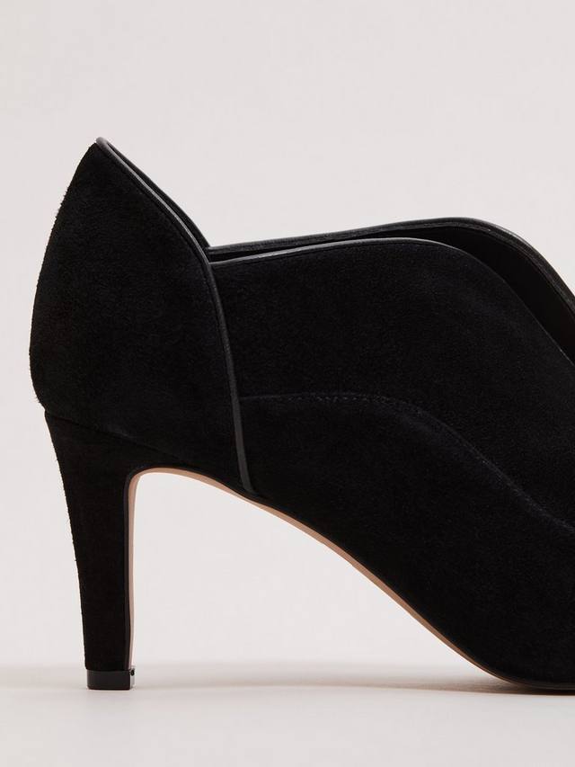 В каждом гардеробе должны быть чёрные ботильоны. Эти ботильоны на каблуке, изготовленные из 100% замши, отличаются изысканной белой строчкой и мягким заострённым носком, создающим изысканный силуэт.