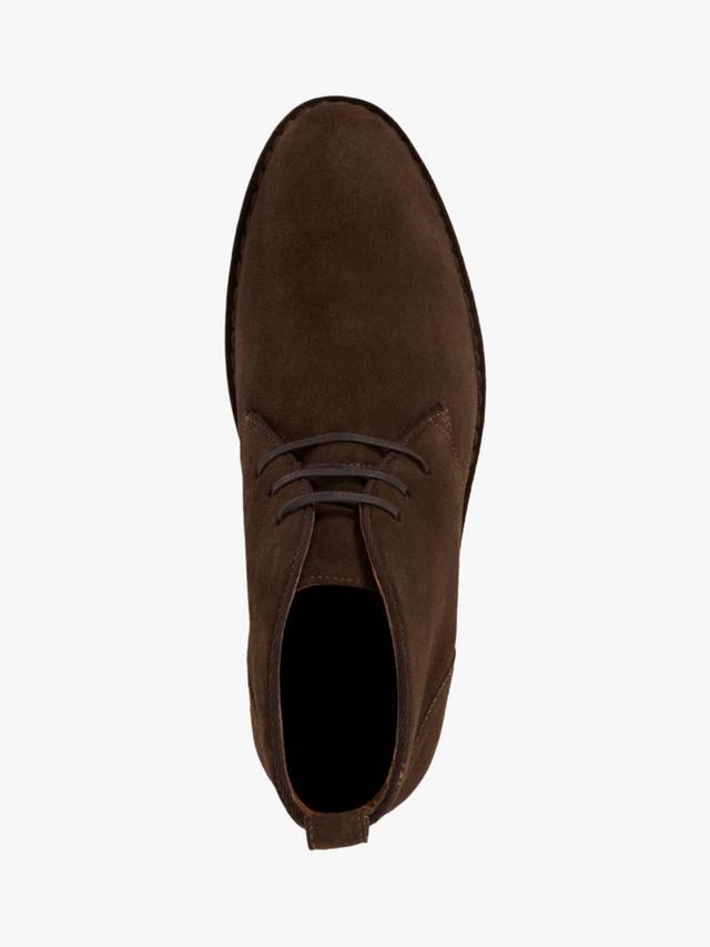 Эти классические ботинки чукка, искусно изготовленные из роскошной замши, также дополнены тремя люверсами и удобными петлями.