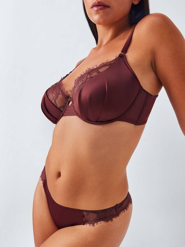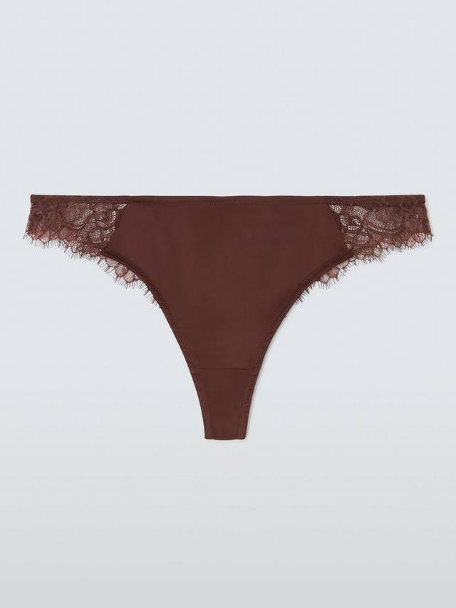 Трусики-бразилья с непрозрачной передней частью для скромности и кружевной спинкой.