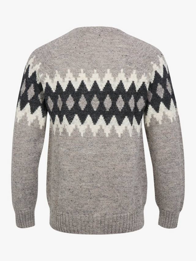 Этот джемпер, изготовленный из британской шерсти, имеет классический круглый вырез горловины и узор в виде ромбов и шевронов на груди и рукавах. Ребристая отделка горловины, манжет и подола обеспечивает плотную посадку, демонстрируя непреходящее британское мастерство.