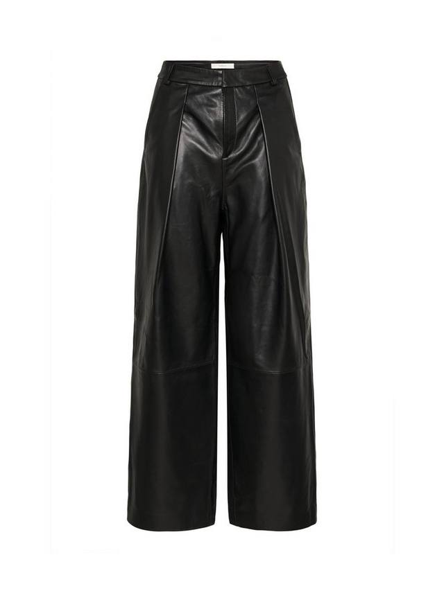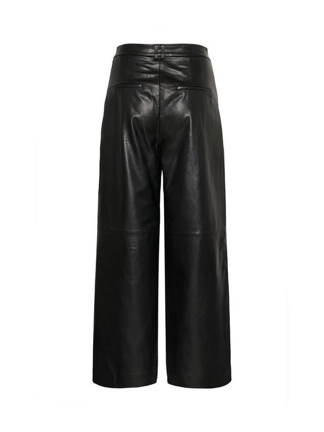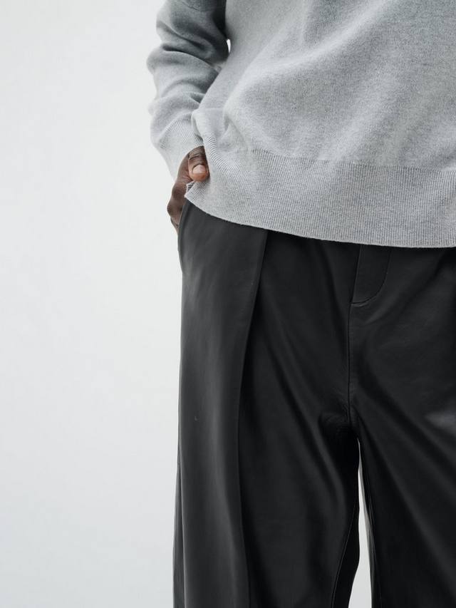 Делайте уверенные шаги в этих кожаных брюках со средней посадкой, сшитых на заказ, широкого кроя. Удобная посадка и плавная застежка-молния позволяют свободно двигаться в течение дня, добавляя элегантности любому образу.