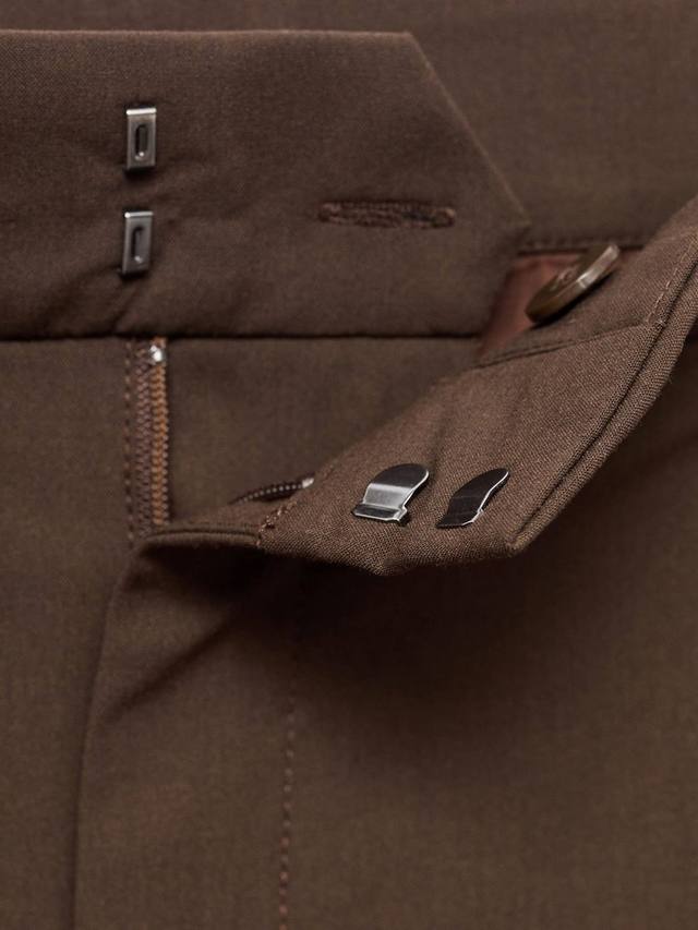 Пара простых, практичных брюк прямого кроя от Mango. Они имеют среднюю посадку, застежку на молнию и стандартную длину.