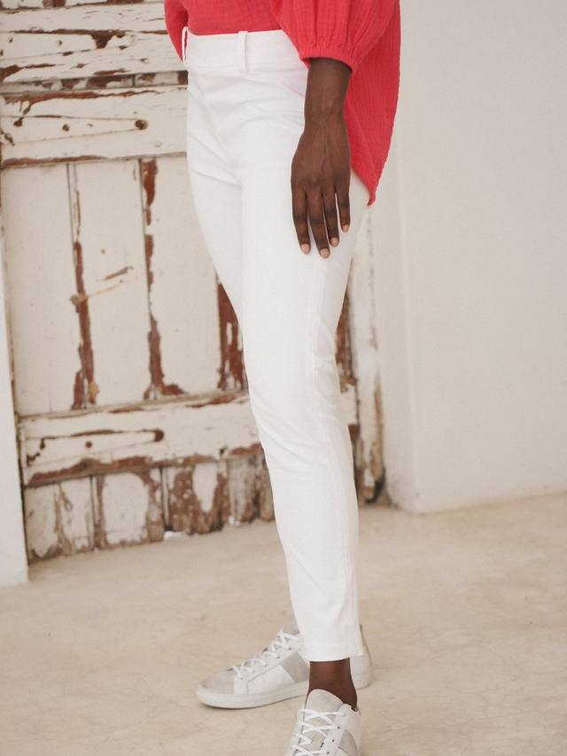 Эти брюки от NRBY с подчеркнуто элегантным силуэтом естественно сидят на бедрах и имеют облегающий крой.