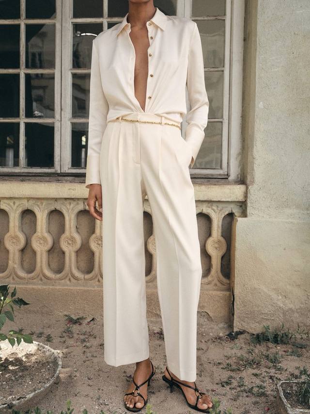 Эти брюки от Mango имеют широкий прямой крой, который удобно адаптируется к вашему темпу. Они имеют среднюю посадку, застегиваются на молнию и имеют низ до щиколотки.