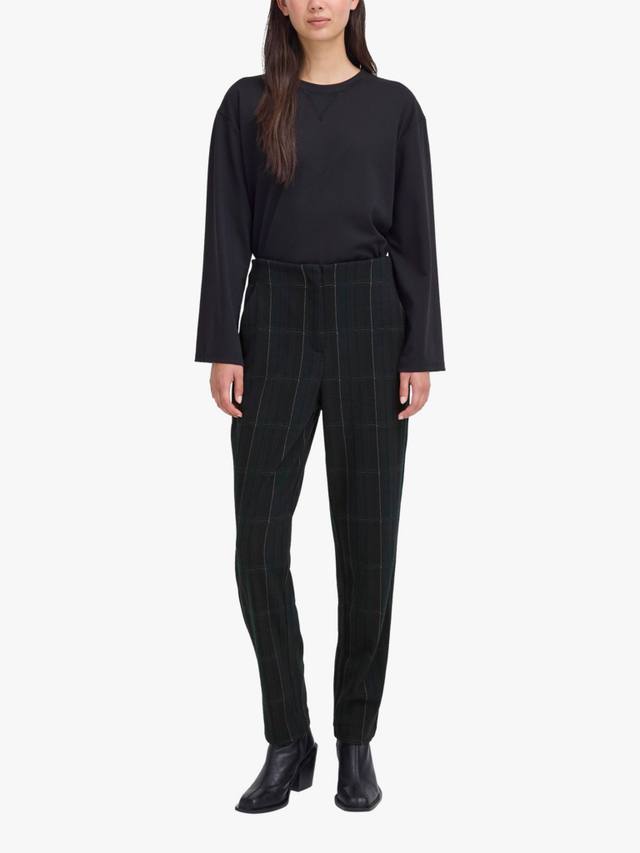 Зауженные брюки от ICHI. Средняя посадка, застежка на молнию, классический клетчатый принт.