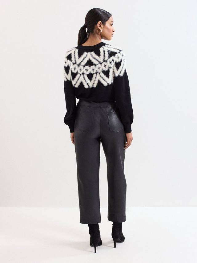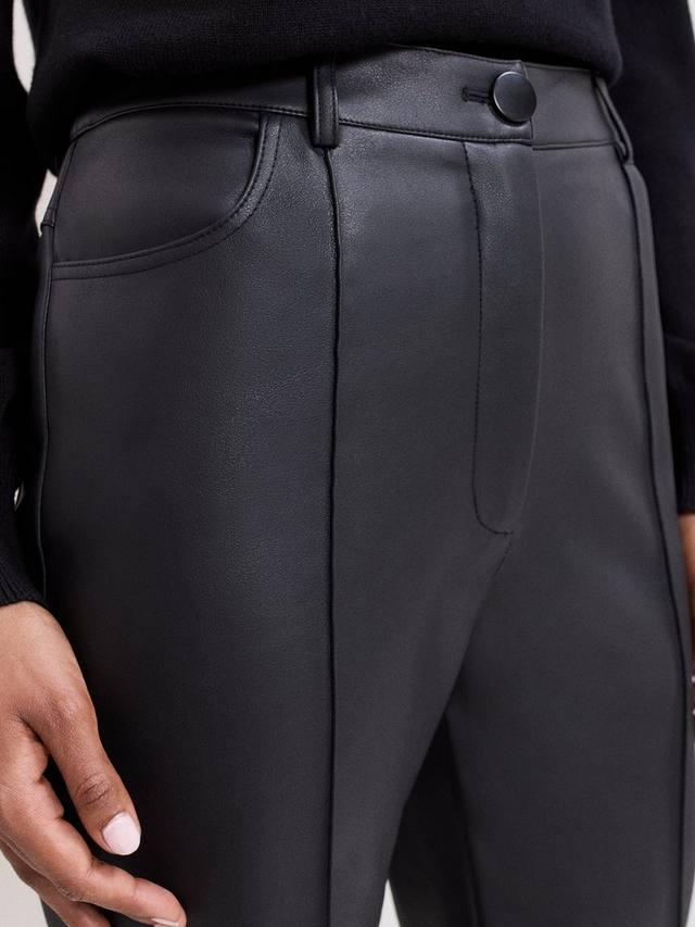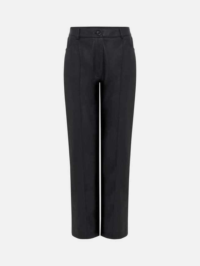 Эти укороченные брюки-сигареты выполнены из современной искусственной кожи, которая добавит изюминку вашему гардеробу. Идеально сочетаются с трикотажем и ботинками для создания элегантного делового образа, а также с современной блузкой и каблуками для стильного вечернего выхода.