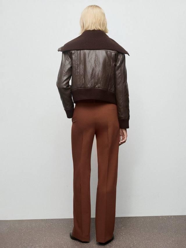 Чёткий силуэт, подчёркнутый прямыми штанинами – брюки от Mango. Средняя посадка, потайная застёжка на пуговицу, крючок и молнию спереди, удлинённый нижний край.