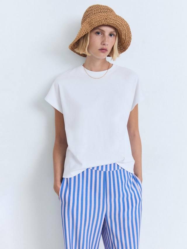 Эти широкие брюки-кюлоты от Mango сочетают выразительные линии кроя и властный силуэт. Они имеют среднюю посадку, полоски и стандартную длину подола.