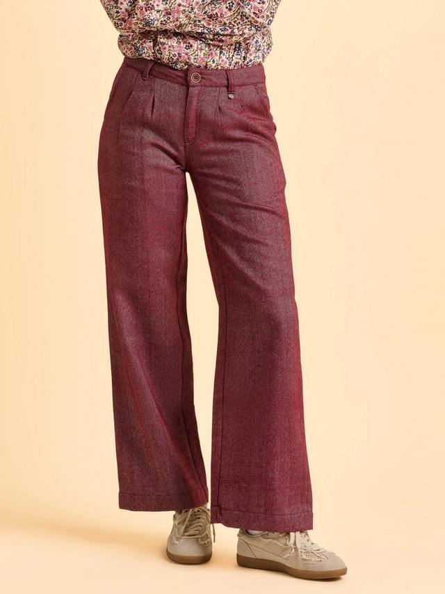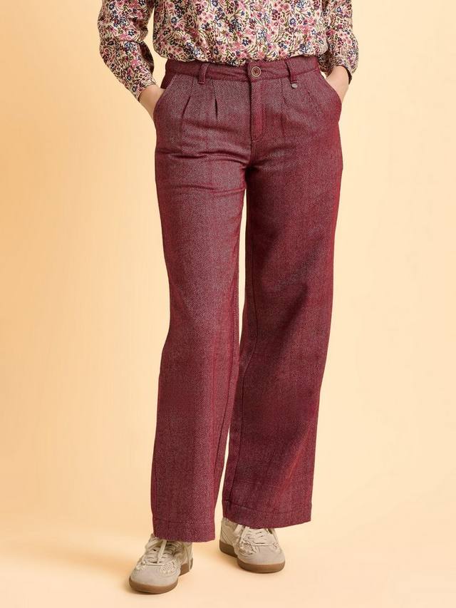 Стильно встречайте холод в брюках Neve. Эти брюки широкого кроя из хлопковой смесовой ткани с узором ёлочка имеют плиссировку на талии для создания привлекательного силуэта, практичные карманы спереди и сзади, а также застёжку на деревянные пуговицы и молнию.