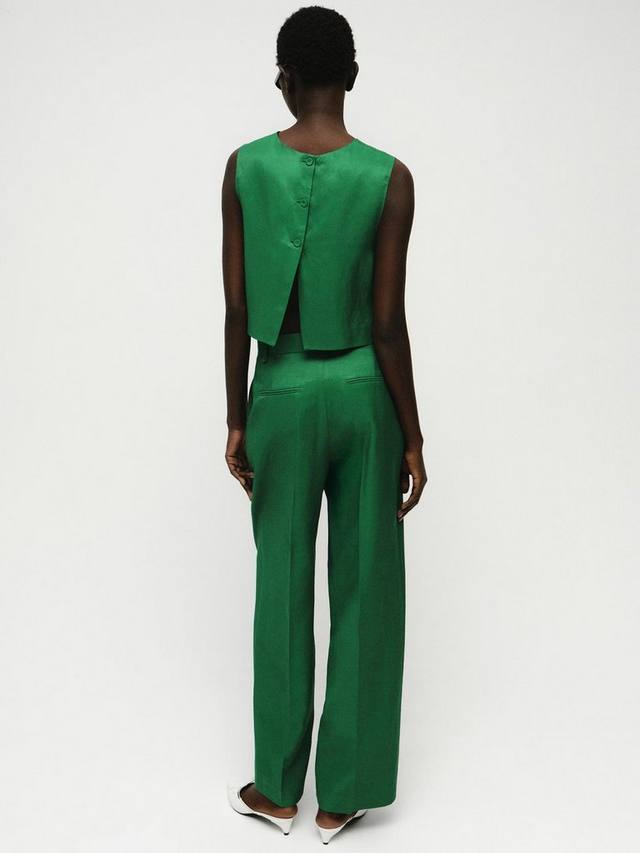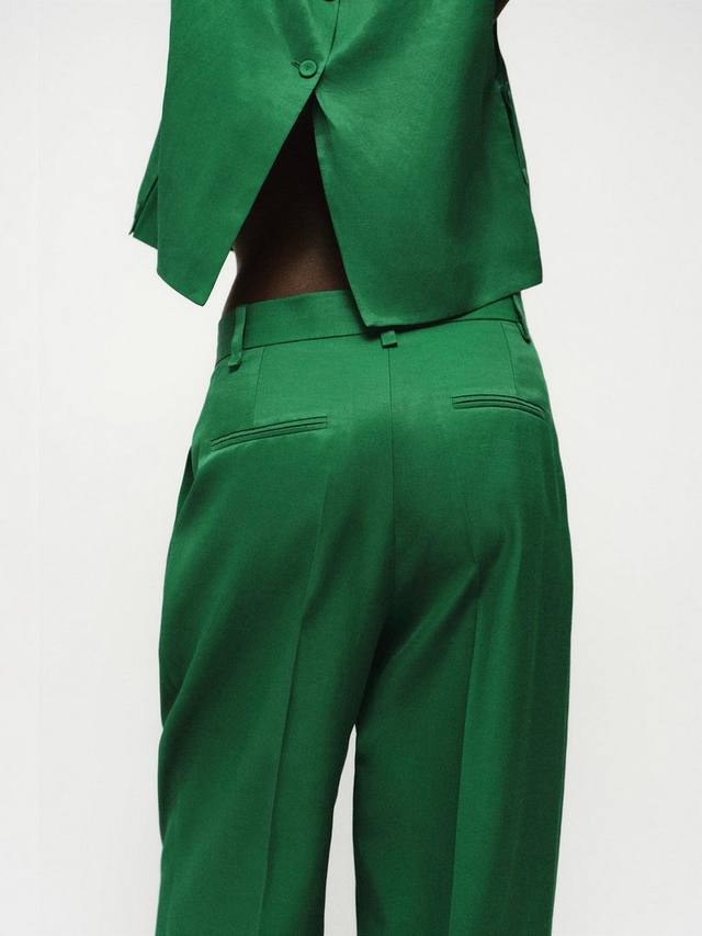 Прямые брюки Mango из смесовой льняной ткани с мягкой атласной отделкой. Средняя посадка, застежка на молнию, стандартная длина.