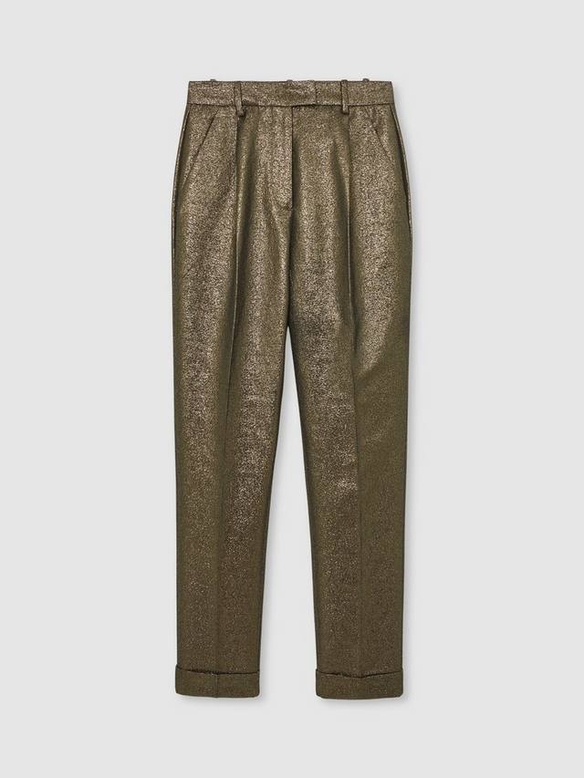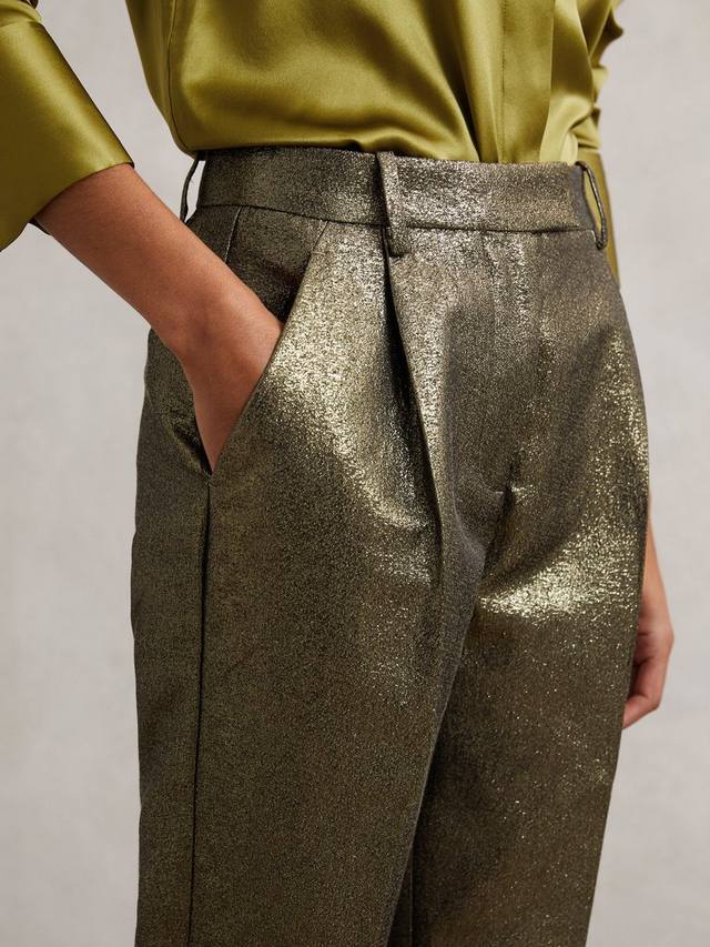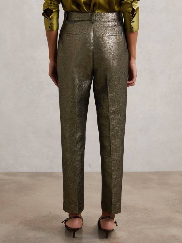 Приталенные зауженные брюки для миниатюрных от Reiss с блестящей основой из смесового хлопка. Они имеют среднюю посадку, застежку на молнию и стандартную длину низа.