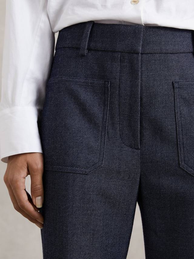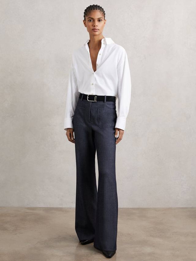 Облегающий верх и увеличенный объём в области брючин – расклешённые брюки от Reiss из тёплой шерстяной ткани. Посадка средняя, застёжка-молния, нижний край стандартной длины.
