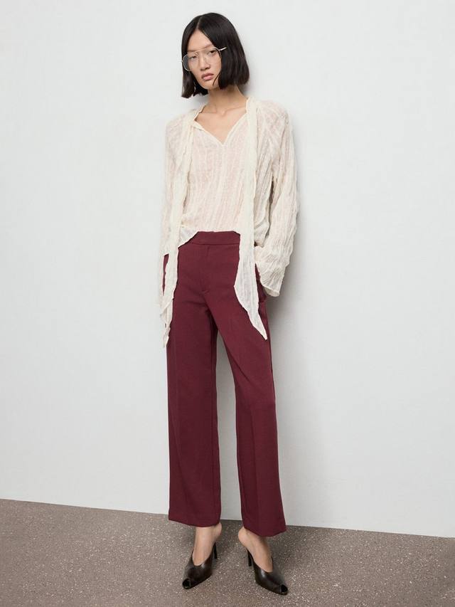 Эти брюки от Mango с четким силуэтом, подчеркивающим фигуру, имеют высокую посадку и визуально удлиняют фигуру.