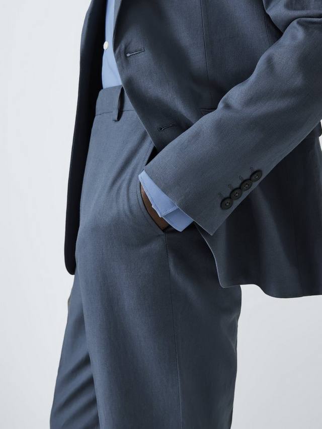 Льняные вискозные брюки для костюма, сшитые по нашей спецификации облегающего кроя, доступны в трех цветовых вариантах: Airforce, Light Grey и Light Green.