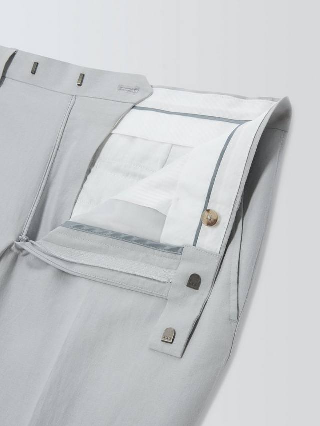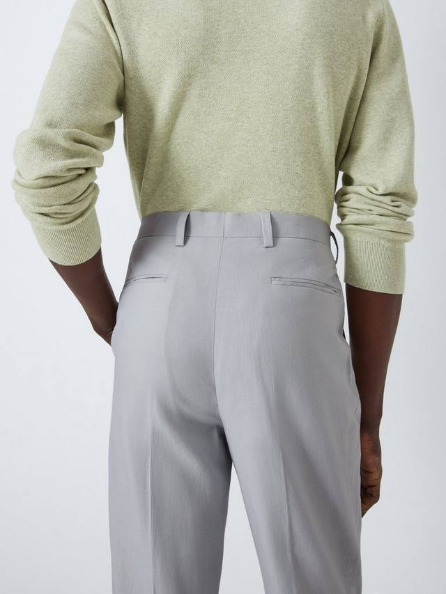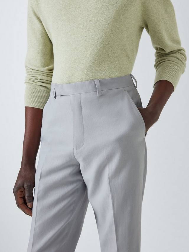 Льняные вискозные брюки для костюма, сшитые по нашей спецификации облегающего кроя, доступны в трех цветовых вариантах: Airforce, Light Grey и Light Green.