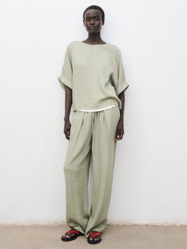 Прямые брюки-джоггеры от Mango. Средняя посадка, талии на шнурке, нижняя кромка стандартной длины.