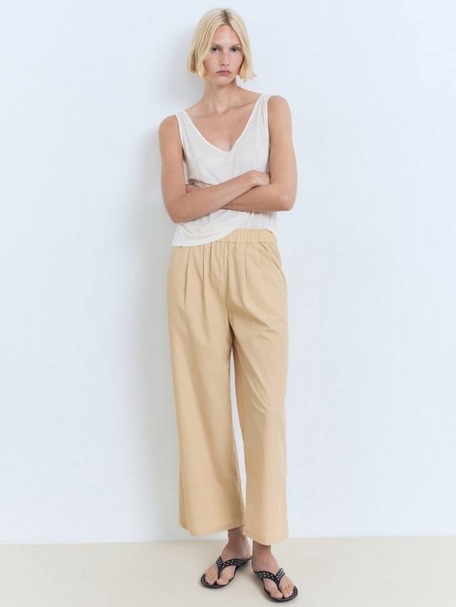 Чёткий силуэт, подчёркнутый прямыми штанинами – брюки от Mango с основой из смесовой хлопковой ткани. Средняя посадка, эластичный пояс и аккуратная укороченная длина.