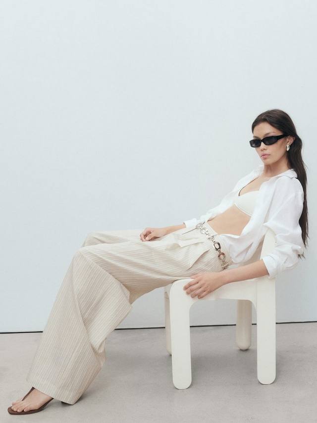 Эти брюки свободного кроя со средней посадкой из чистого хлопка украшены тонкой полоской, обеспечивая комфорт и уверенность в течение всего дня. Практичные застежки облегчают процесс одевания, а продуманный крой сохраняет ваш образ стильным и свежим.
