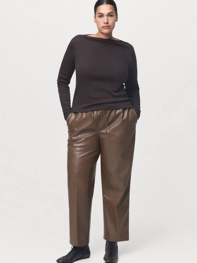Созданы для баланса — брюки прямого кроя от Mango из гладкой искусственной кожи. Средняя посадка, эластичный пояс и стандартная длина.