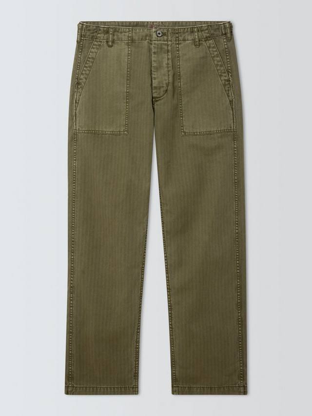 Эти брюки, изготовленные из хлопчатобумажной саржи с узором ёлочка, прочные и не сковывают движений. Стираные после стирки брюки мягкие и поношенные, а текстурированное плетение ткани создаёт винтажный вид, который со временем становится только лучше.
