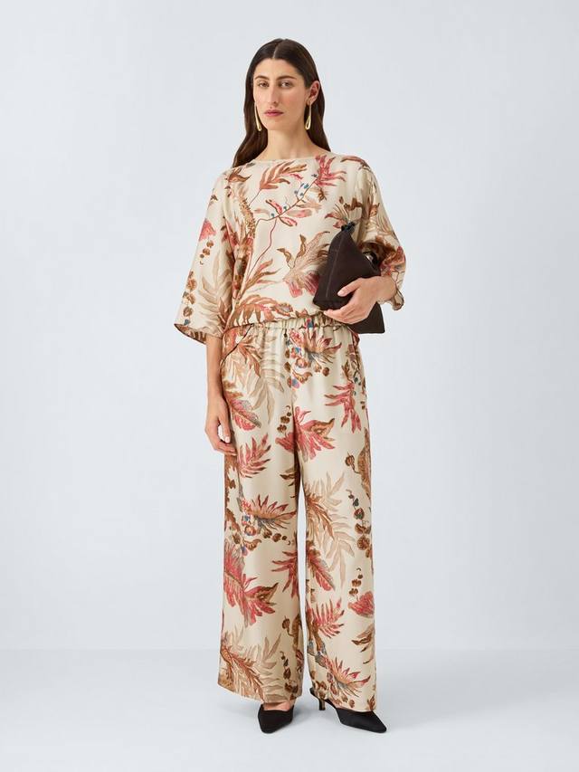 Сдержанный объем и строгий крой – брюки широкого кроя от Weekend MaxMara из мягкого облегающего шелка. Они имеют среднюю посадку, эластичный пояс, ботанический принт и удлиненный нижний край.