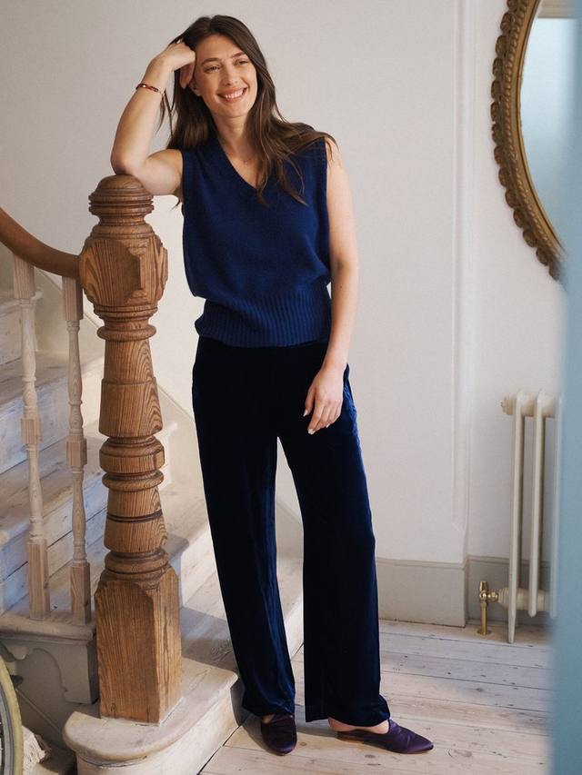 Бархатные брюки, которые отлично дополнят ваш смокинг и обеспечат домашний уют. Широкий силуэт Thea выполнен из мягкой, роскошной бархатной смеси, имеет аккуратный плоский пояс спереди и резинку сзади.