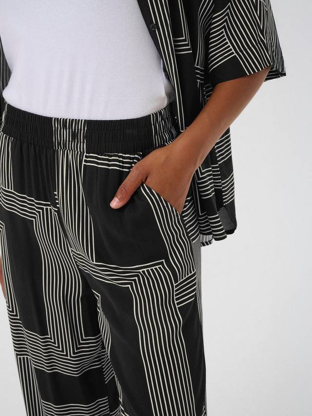 Брюки KAFFE с эффектным абстрактным узором, удобной средней посадкой и прямым кроем. Мягкая вискозная ткань не сковывает движений, идеально подходит как для активных дней, так и для расслабленных моментов.