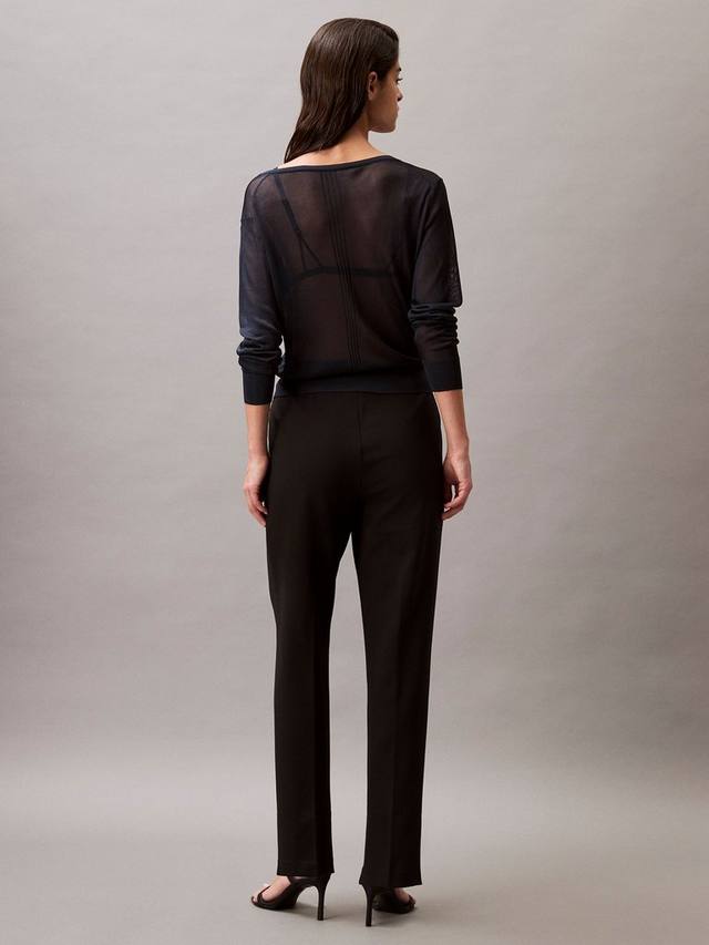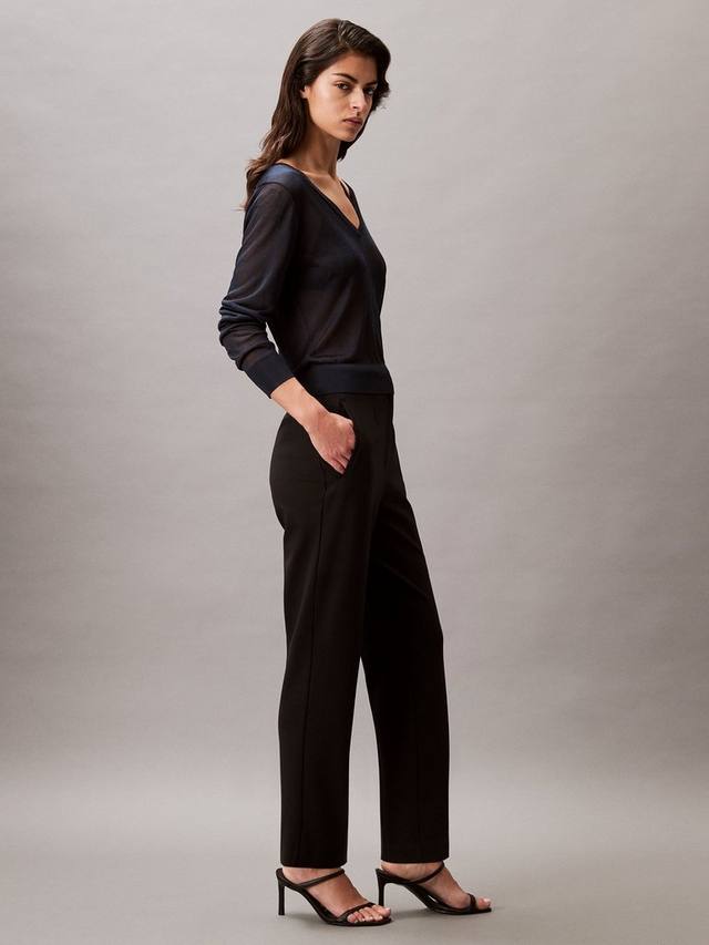 Современные облегающие брюки от Calvin Klein. Эта модель с практичной средней посадкой и узким низом, доходящим до щиколотки, идеально подходит для работы или торжественных случаев.